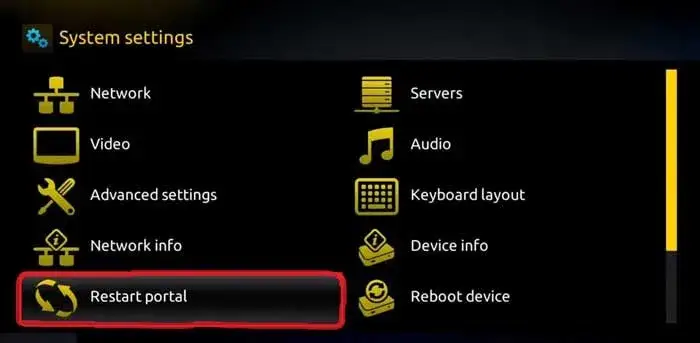Step 7 : Now, go back to the System settings and click on the restart portal option